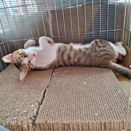因為家裡養了三隻浪貓已經是極限無法再養更多,這隻浪貓跑來家裡蹭飯蹭了一陣子變得越來越不怕人,當下就決定誘捕他配合動物之心的醫院做TNR再放走,結果做完手術在家養傷期間變得越來越親人,傷口復原以後放走他結果不走還常常躲回籠子,結果就只好在外面整理出一個小環境讓他在外面能保暖睡覺,但可惜已經養三隻貓已經是我的能力極限再多就無法兼顧好照顧的品質,但又希望這隻浪貓能夠遇到好人收養。