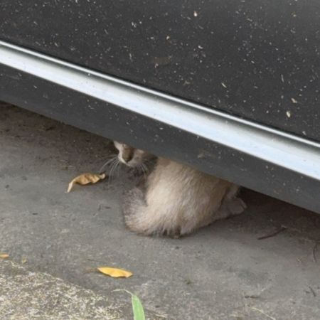 北屯捷運站步行出來轉右,敦富九街之前,一輛Benz轎車底下