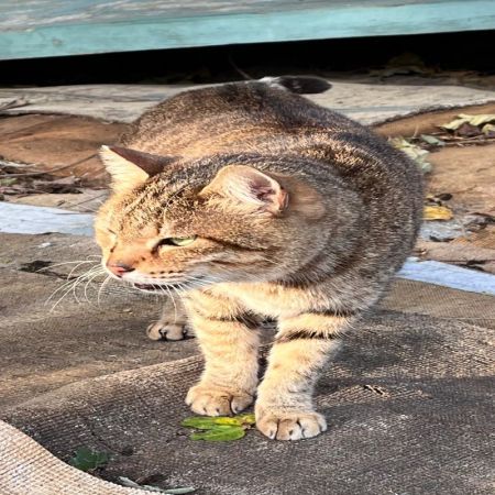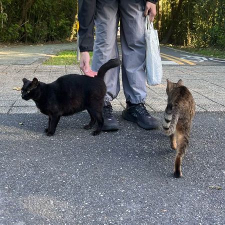 浪貓群聚,雖然有人餵食,但生病無人醫治,其中一隻橘白色似乎有口腔疾病,有一隻黑貓身上有不明腫塊。