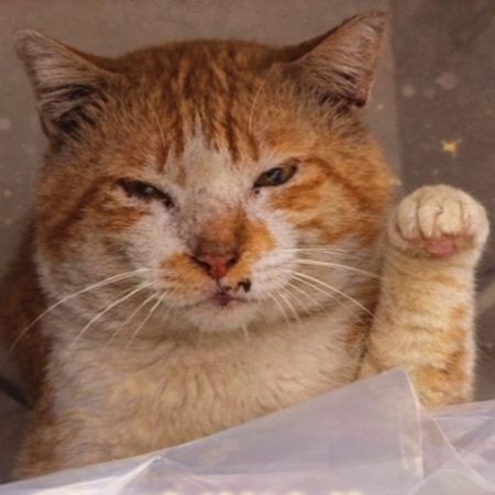 因躲避下雨半夜跑進飲料店裡躲雨,發現時縮在櫃檯下方,有先餵食引誘,但失敗了,被看到會躲回原本待的地方,緊惕心強烈,骨瘦如柴但很敏捷的貓貓。