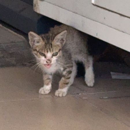 [台北市萬華區] 在北市萬華區路邊有一隻貓疑似看不到,獨自走在路中間的貓,身體很瘦,餵食沒辦法吃