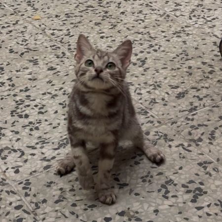 美短 灰白色 3、4 個月 親人但聽到聲音會躲起來 有黴菌 尾巴最後面有一些毛不見