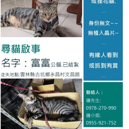 [台南市安南區] 我家橘花公貓(喬喬)已經7天沒回家..請大家幫忙協尋..感謝再感謝